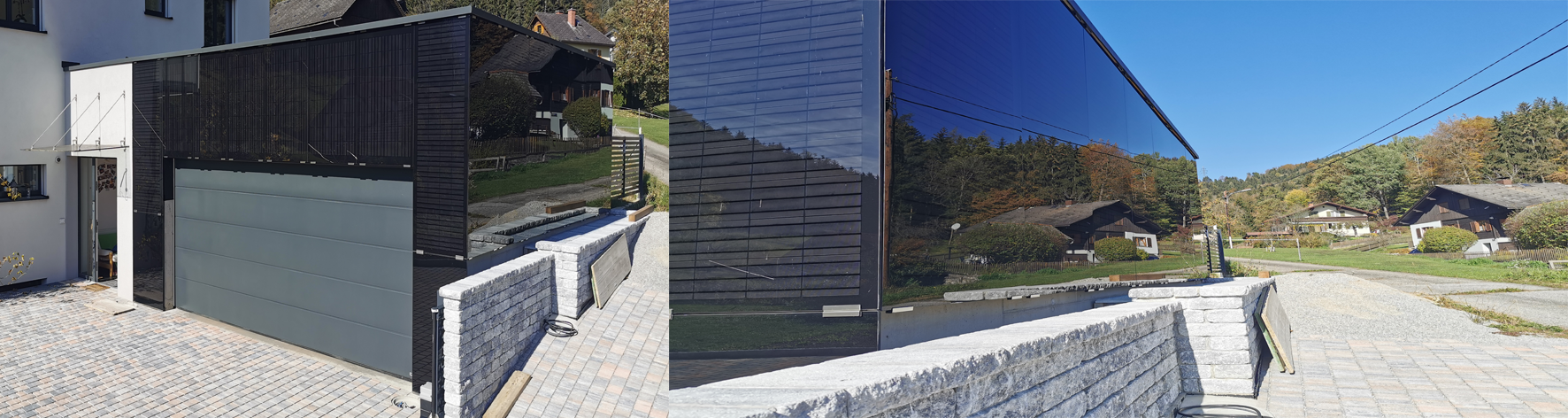 Sie haben Probleme die optimale Position für Ihre zukünftige Solaranlage zu finden oder möchten die vorhandene erweitern? Haben Sie schon an Ihre Fassade gedacht? Dieser Kunde produziert mit seinen 17 neuen Modulen in full black an der Garage mehr als 3,8 kWp.
