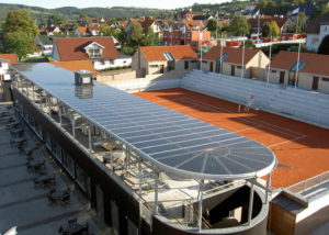 Biergarten Partenaire: Oberhauser Bau-Systeme GmbH Modules: VSG TVG 6/6 | 950 mm x 5000 mm Transparence: 30 % modules photovoltaïques semi-transparents total puissance installée [...]