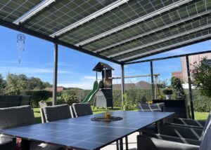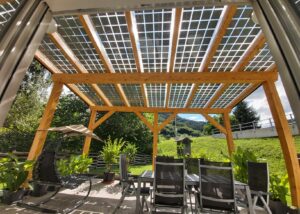 Terrasse Famille K. Modules: VSG TVG 5/5 | différentes tailles modules photovoltaïques semi-transparents total puissance installée [...]