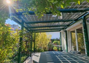 Terrasse Famille Z. Modules: VSG TVG 6/6 | 950 x 3.120 mm | cellules perforées modules photovoltaïques semi-transparents total puissance installée [...]